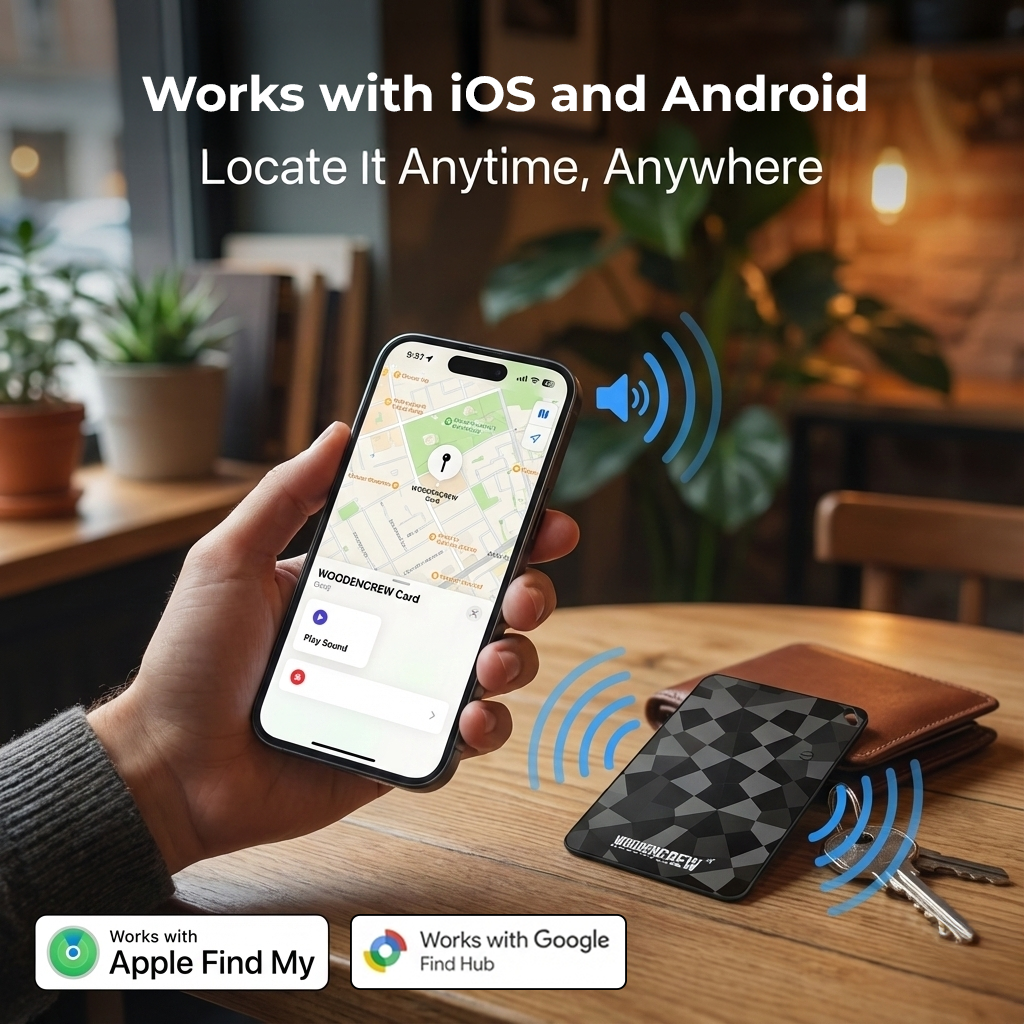 Unlike bulky key trackers or Apple-only tags, this card fits places others can’t — and works with every smartphone. Wallets, travel bags, documents, electronics — anything becomes trackable without adding bulk.